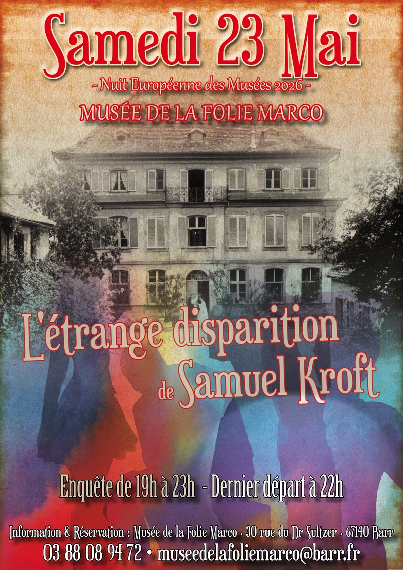 – Inscription directement auprès du Musée de la Folie Marco (30 rue du Docteur Sultze, 67140 Barr) :  Tél. 03 88 08 94 72 – museedelafoliemarco[@]barr.fr